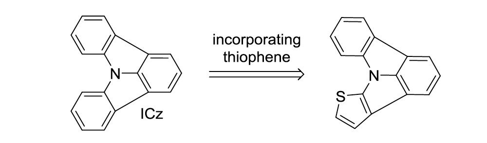 The aim of our current research is to increase the donor strength of the fully planar ICz by introducing electron rich thiophene units into the ICz scaffold. A synthetic approach applying Ullmann condensation as well as CH activation will be presented in this contribution. Furthermore, the photophysical and electrochemical characterizations as well as theoretical calculations of the newly developed target molecules will be discussed.