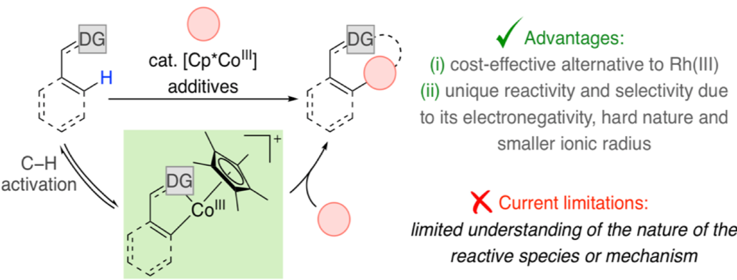 Over the last decades, transition-metal-catalyzed C–H activation has emerged as a powerful tool for the construction of carbon–carbon bonds. Until recently, the majority of these transformations were achieved employing precious second- and third-row transition metals. However, the development of novel methodologies based on more cost-effective first-row transition metal complexes has emerged as a very attractive alternative.1