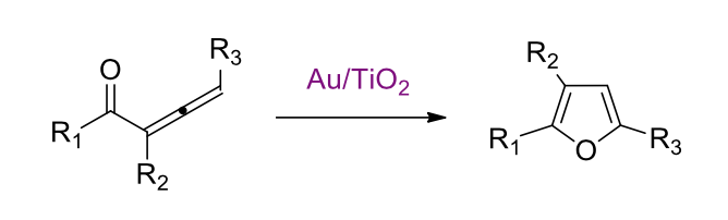 Scheme 1: Cycloisomerization of conjugated allenones into furans, catalyzed by Au/TiO2.