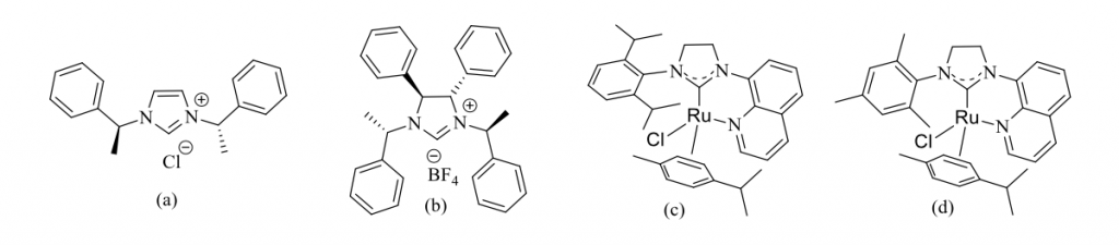 The interesting and tunable properties of N-Heterocyclic carbenes (NHCs) and related ligands have rapidly made them an interesting family of compounds in many areas of chemical research.1-3 In this work, the NHCs employed have a variety of tailor-designed steric and electronic properties, while some contain chiral centers. These NHCs are currently being studied as ligands in the synthesis of novel cobalt-, nickel- and ruthenium-based complexes. These complexes will be investigated with electrochemical and spectroelectrochemical methods, in order to shed light on their electronic structure in their various redox forms.4-5 Moreover, the activity of these complexes will be tested in (electro)catalytic C-C and C-heteroatom bond formation reactions. The results from the physical measurements and catalysis studies will be correlated to deduce sound structure-activity correlations in catalysis.
